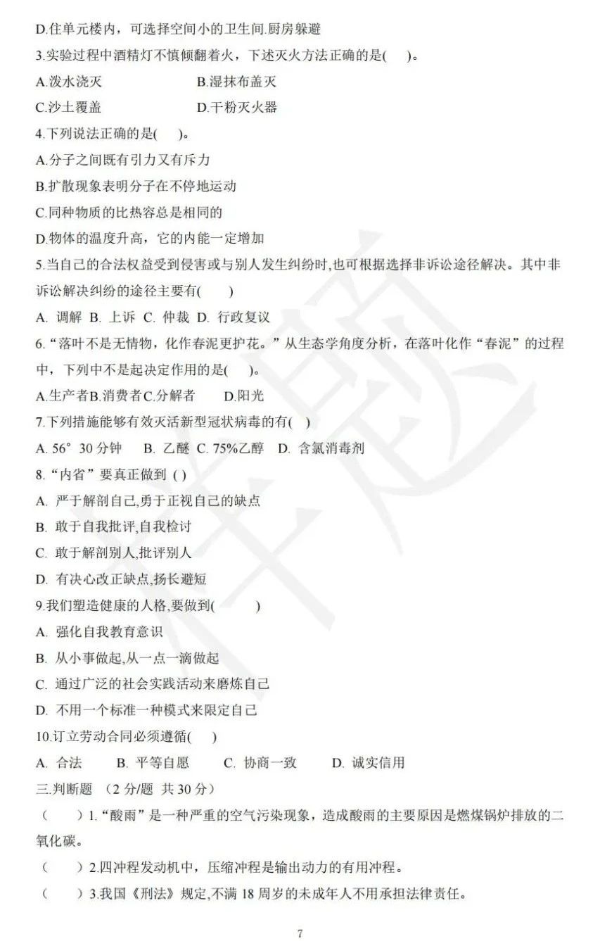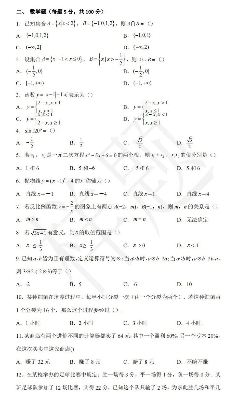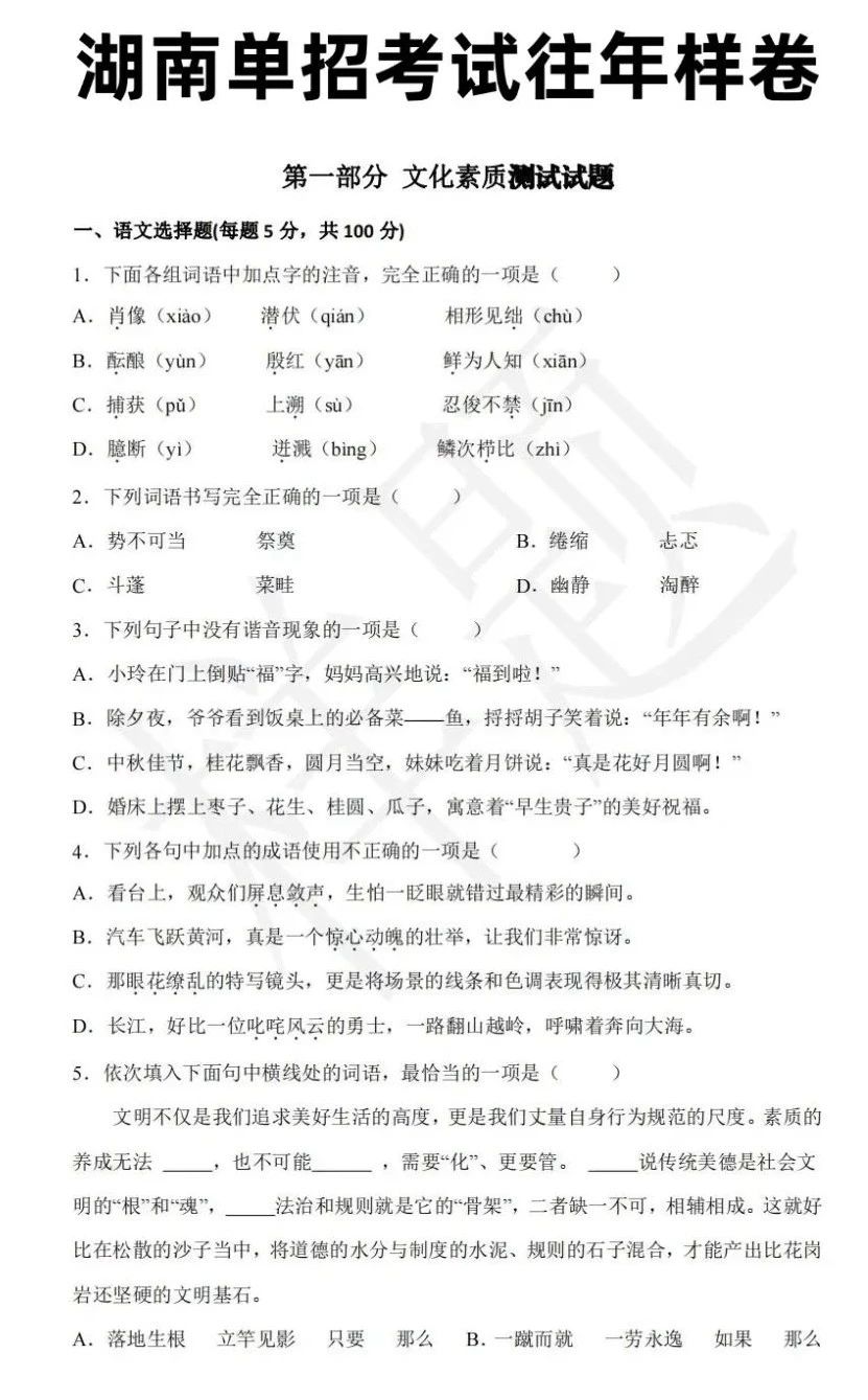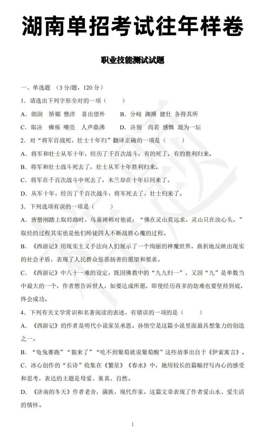 湖南单招考试往年样卷(语数英+职业技能测试)