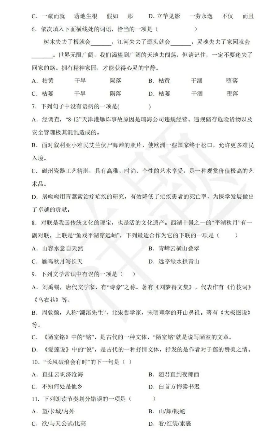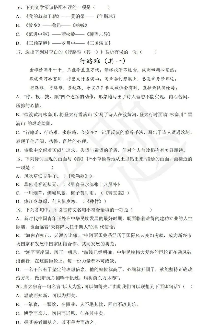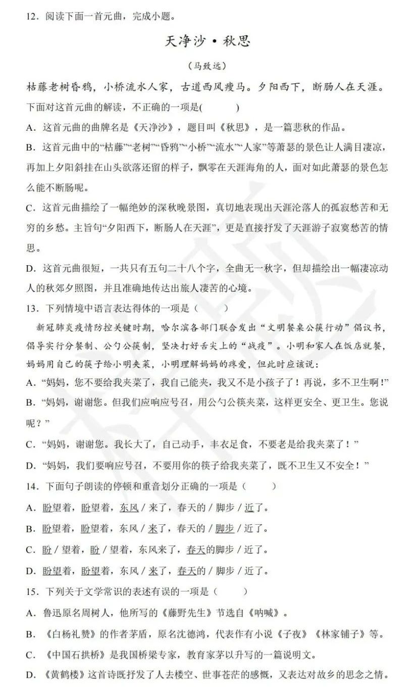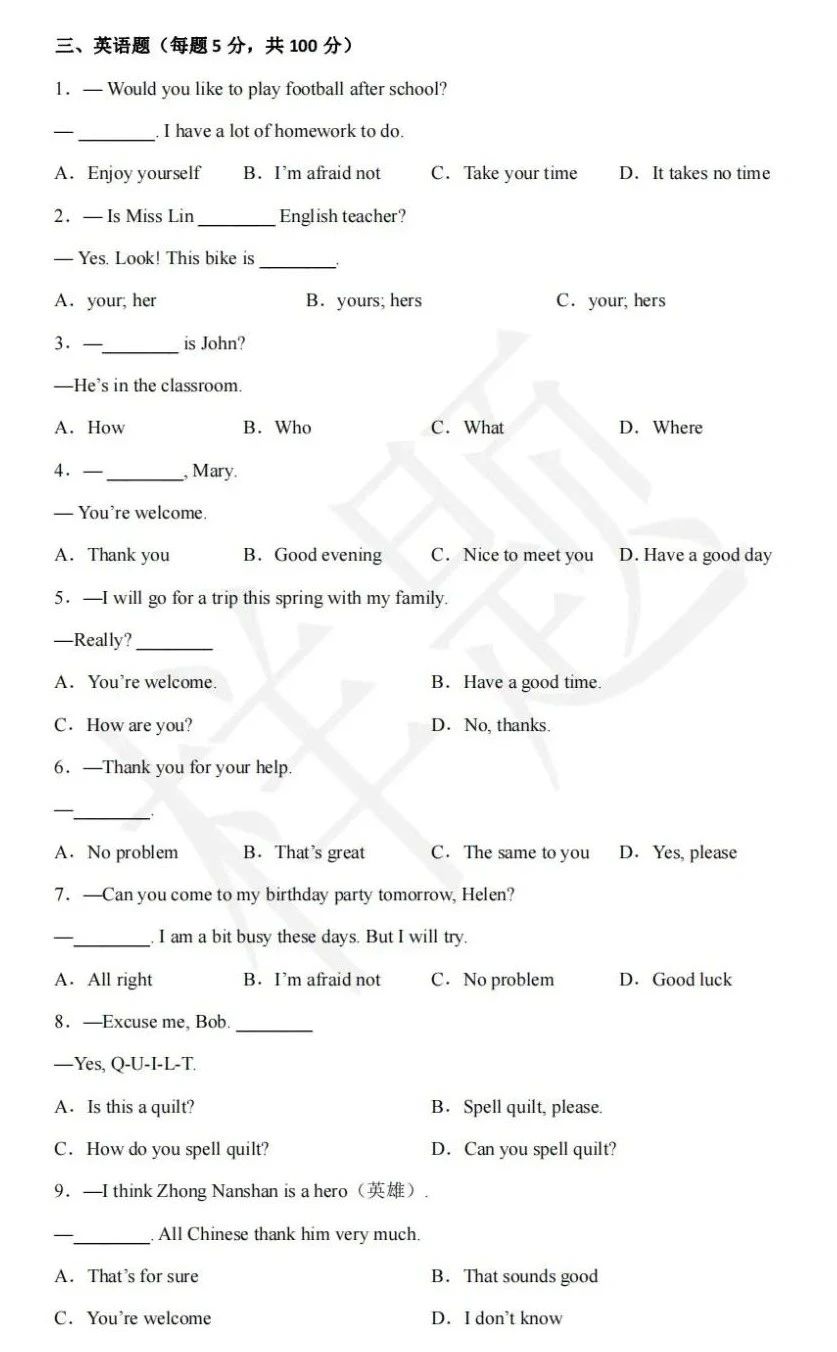 湖南单招考试往年样卷(语数英+职业技能测试)