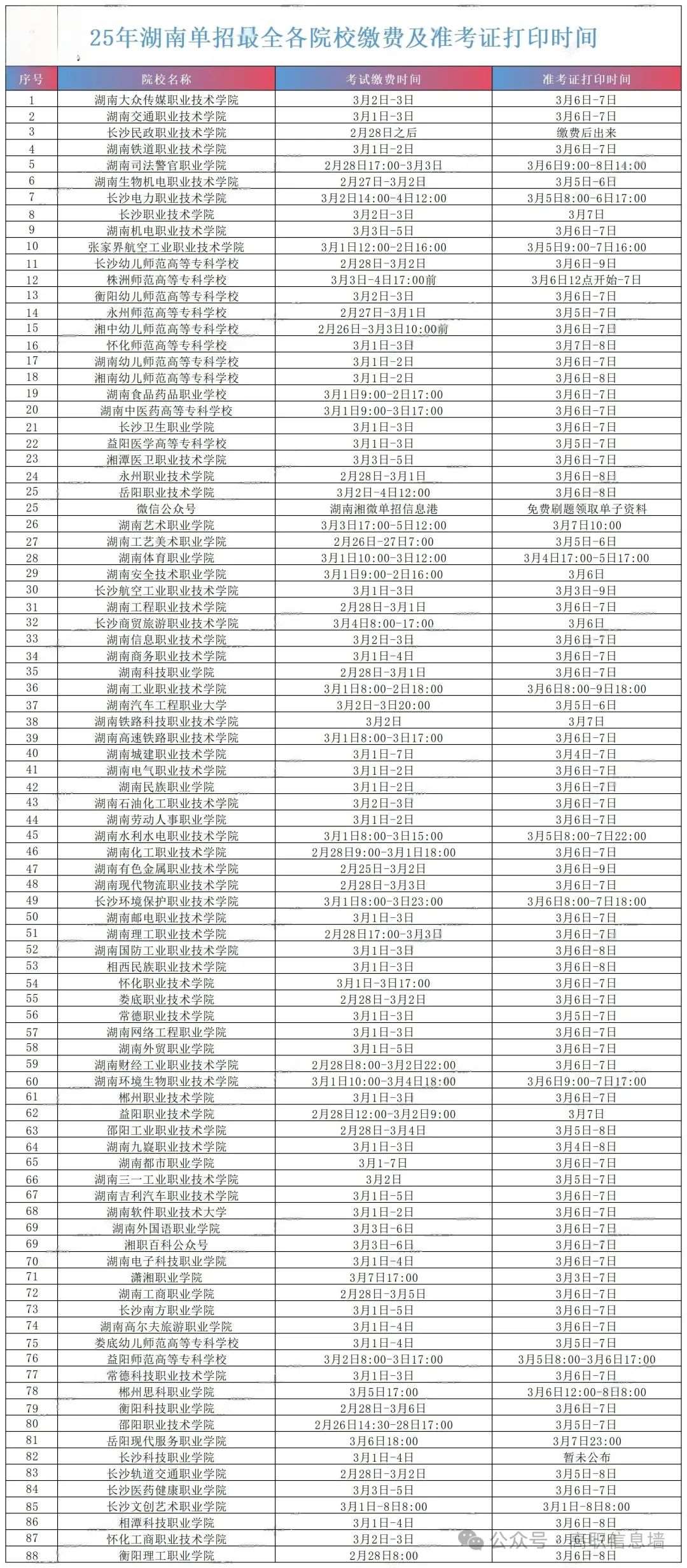 2025年湖南单独招生考试,各院校缴费及准考证打印时间公布!错过无法参加单招考试!