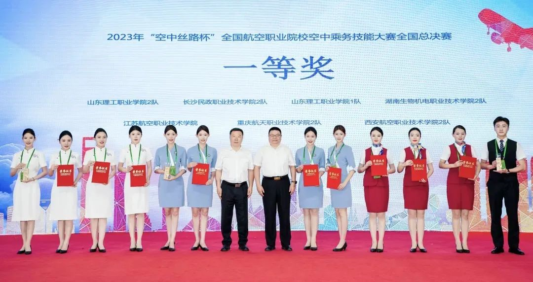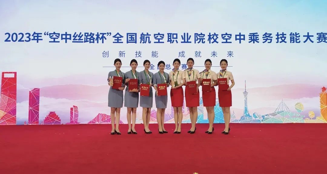 ▲我校学生参加2023年全国航空职业院校空中乘务技能大赛获得