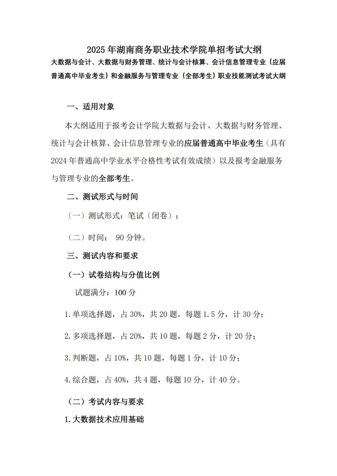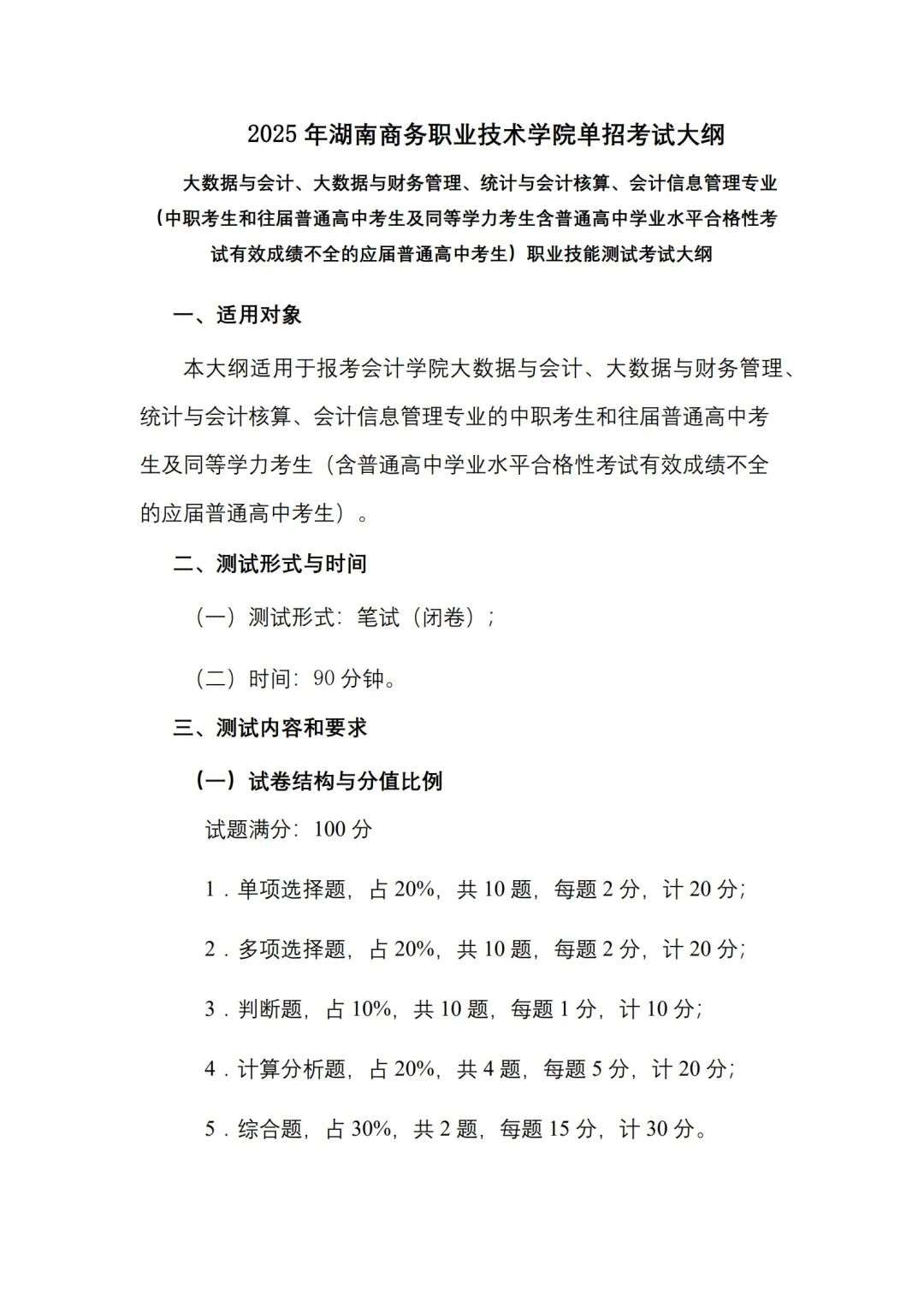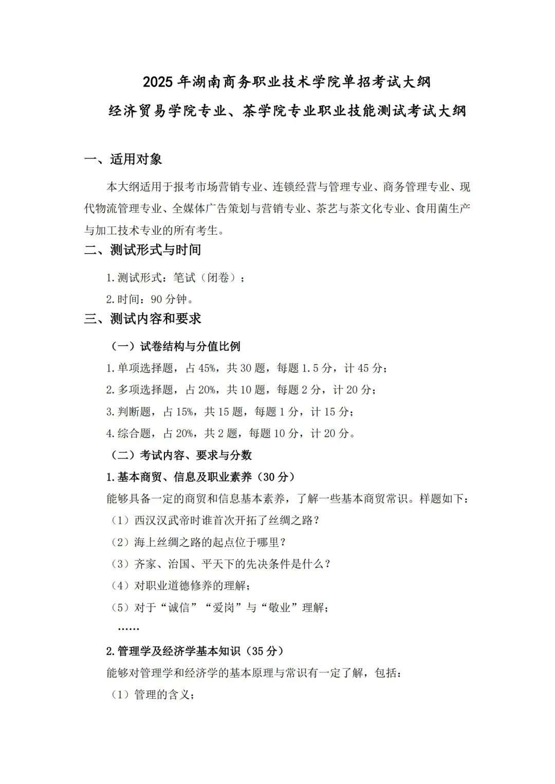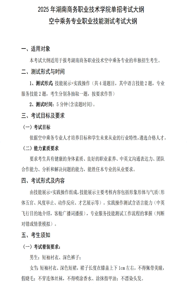 权威发布 l 2025湖南商务职业技术学院单招考试大纲