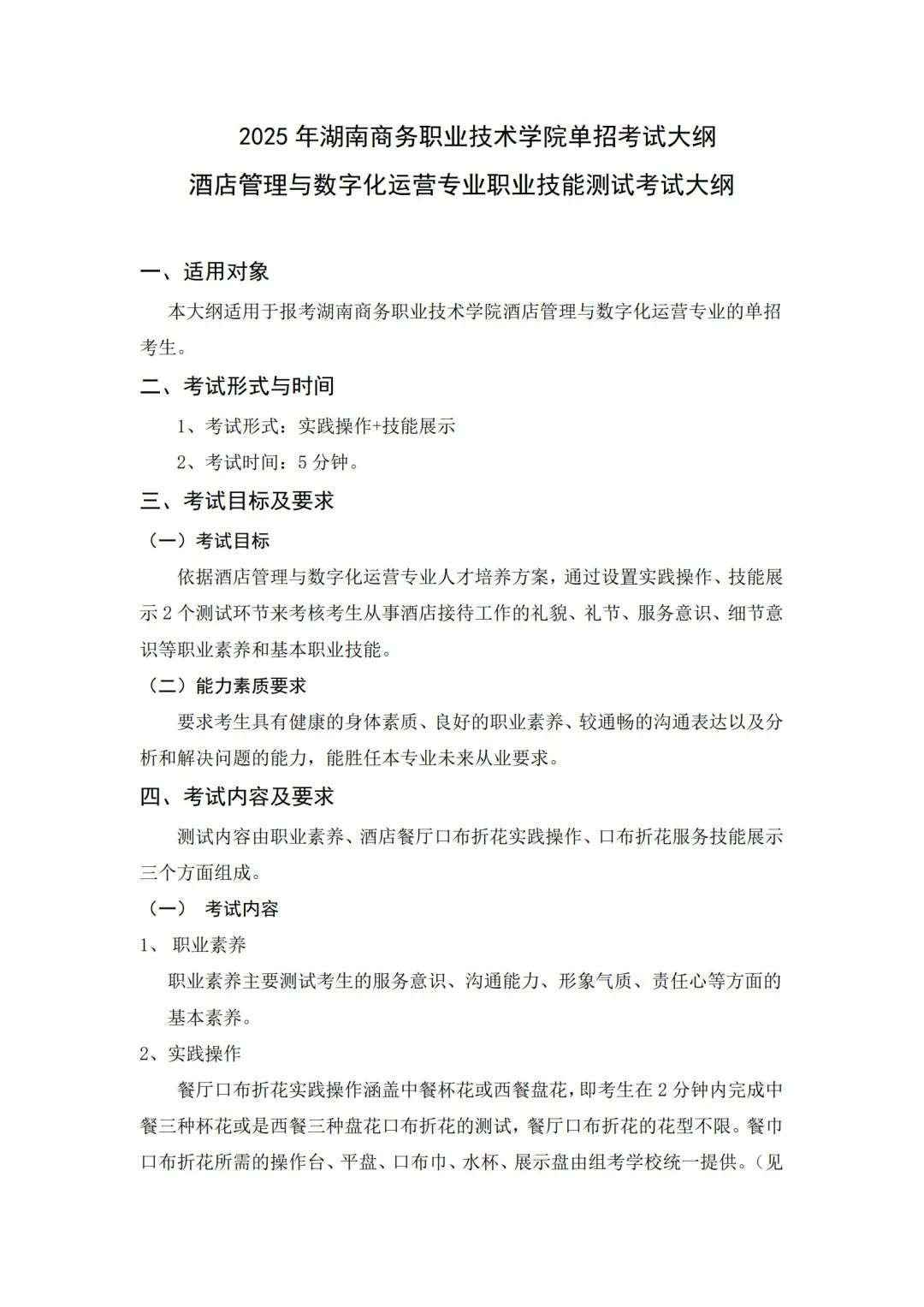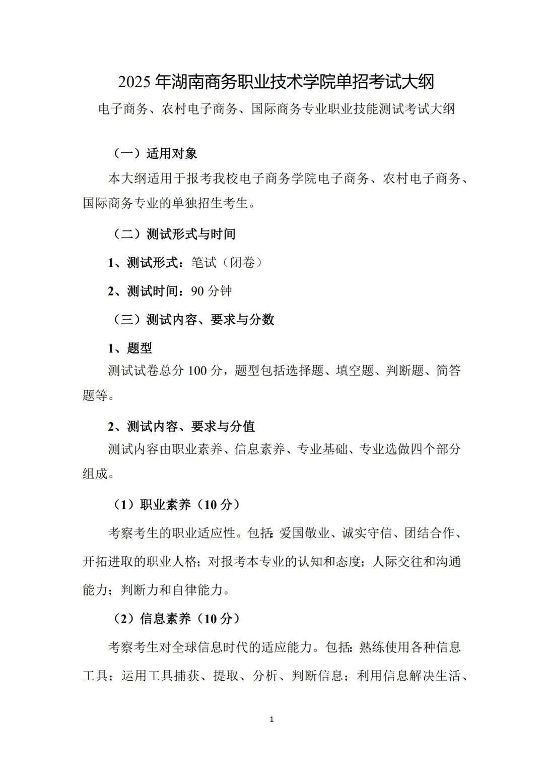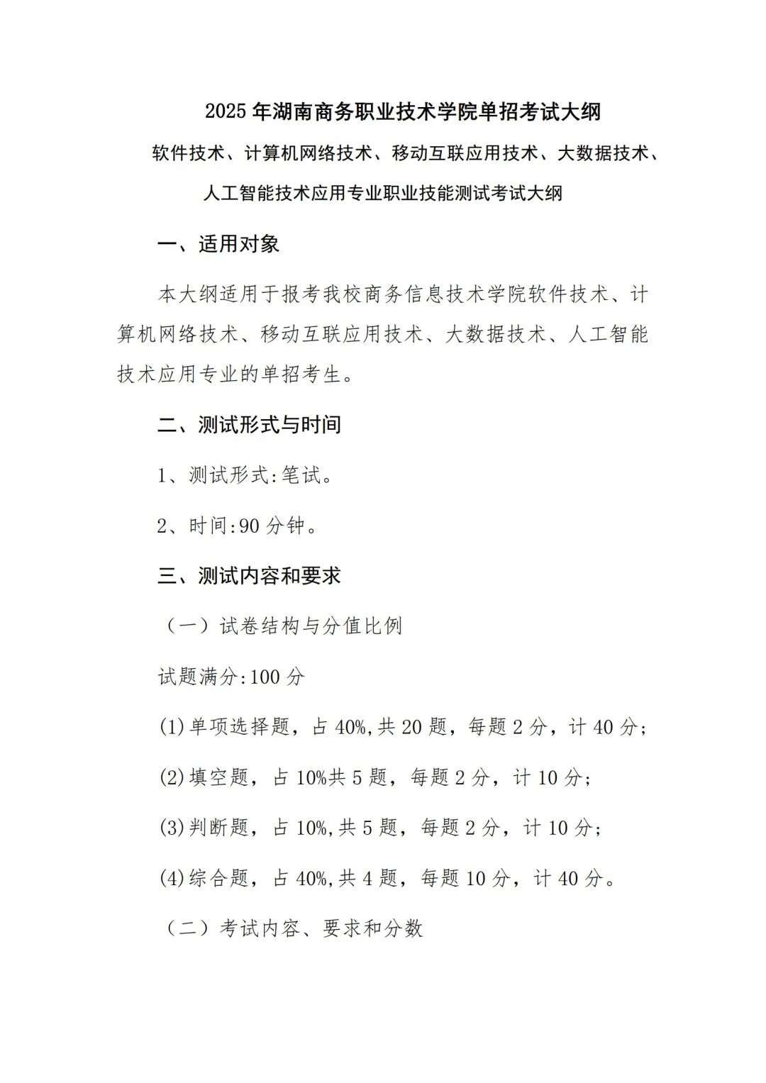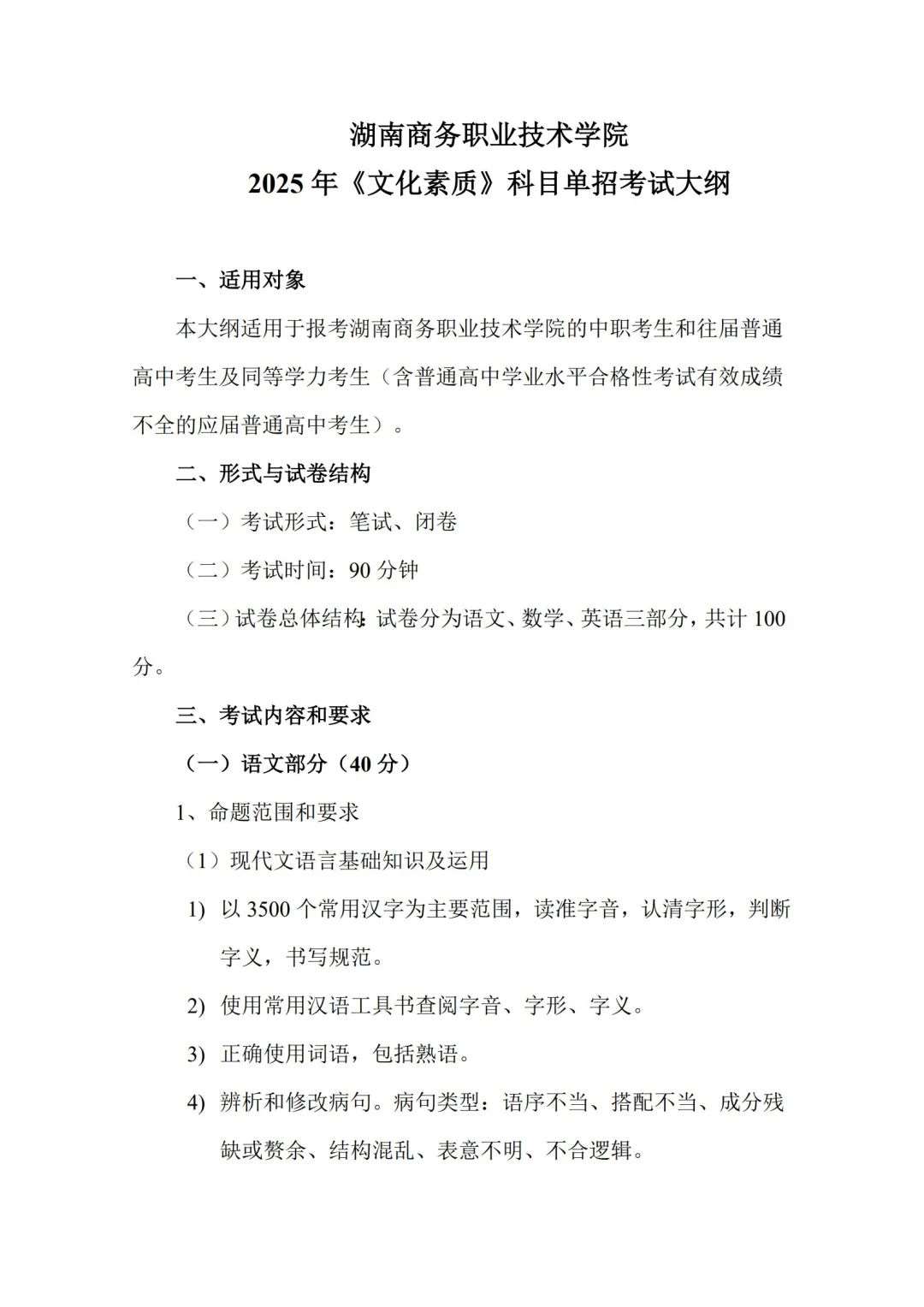权威发布 l 2025湖南商务职业技术学院单招考试大纲