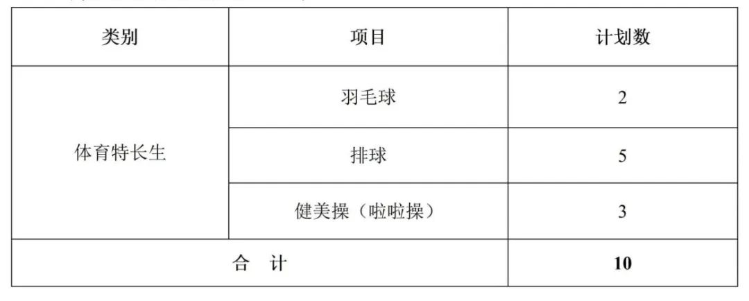 2.体育特长生招生计划10人。考生可在本年度单招专业范围内自行选择报考。特长生招生项目如下: