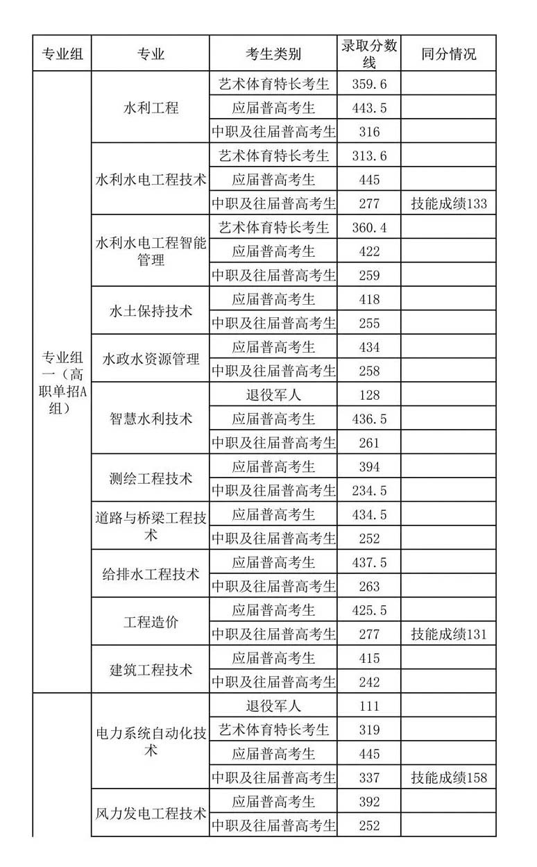 报考专业 | 考生类别 | 录取分数线 | 同分情况 |