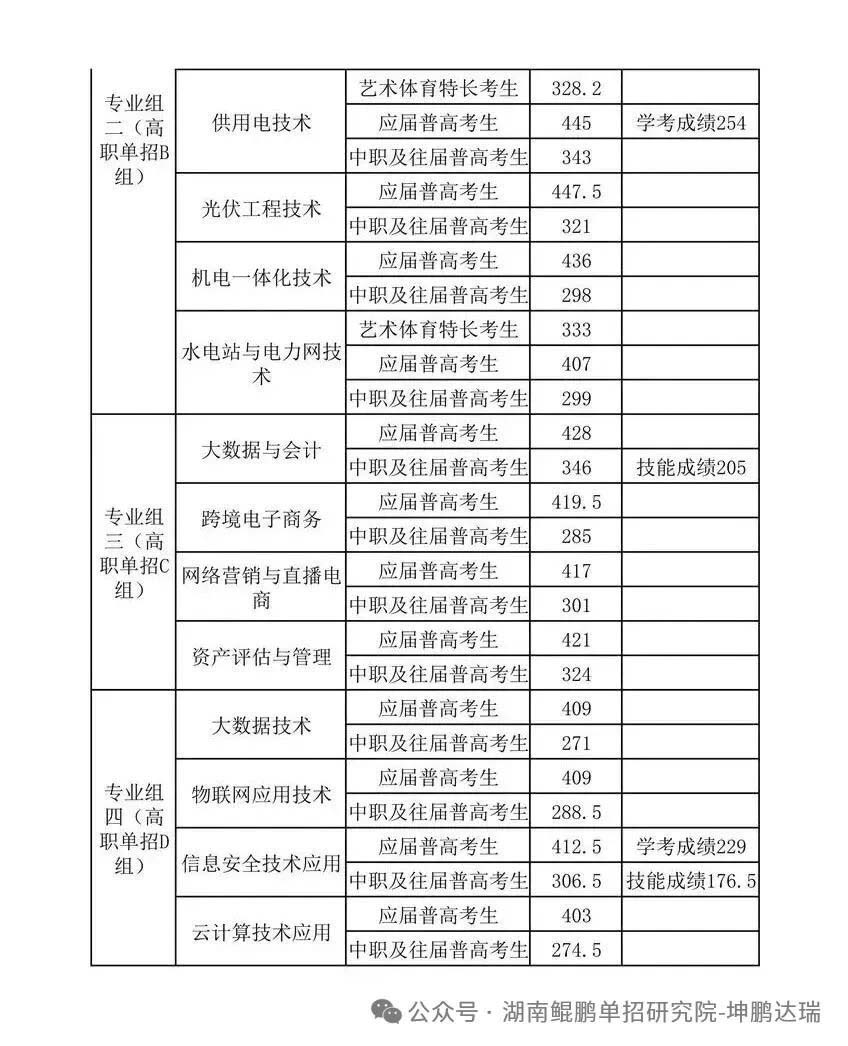 供用电技术 | 应届普通高中毕业考生 | 448.5 | |